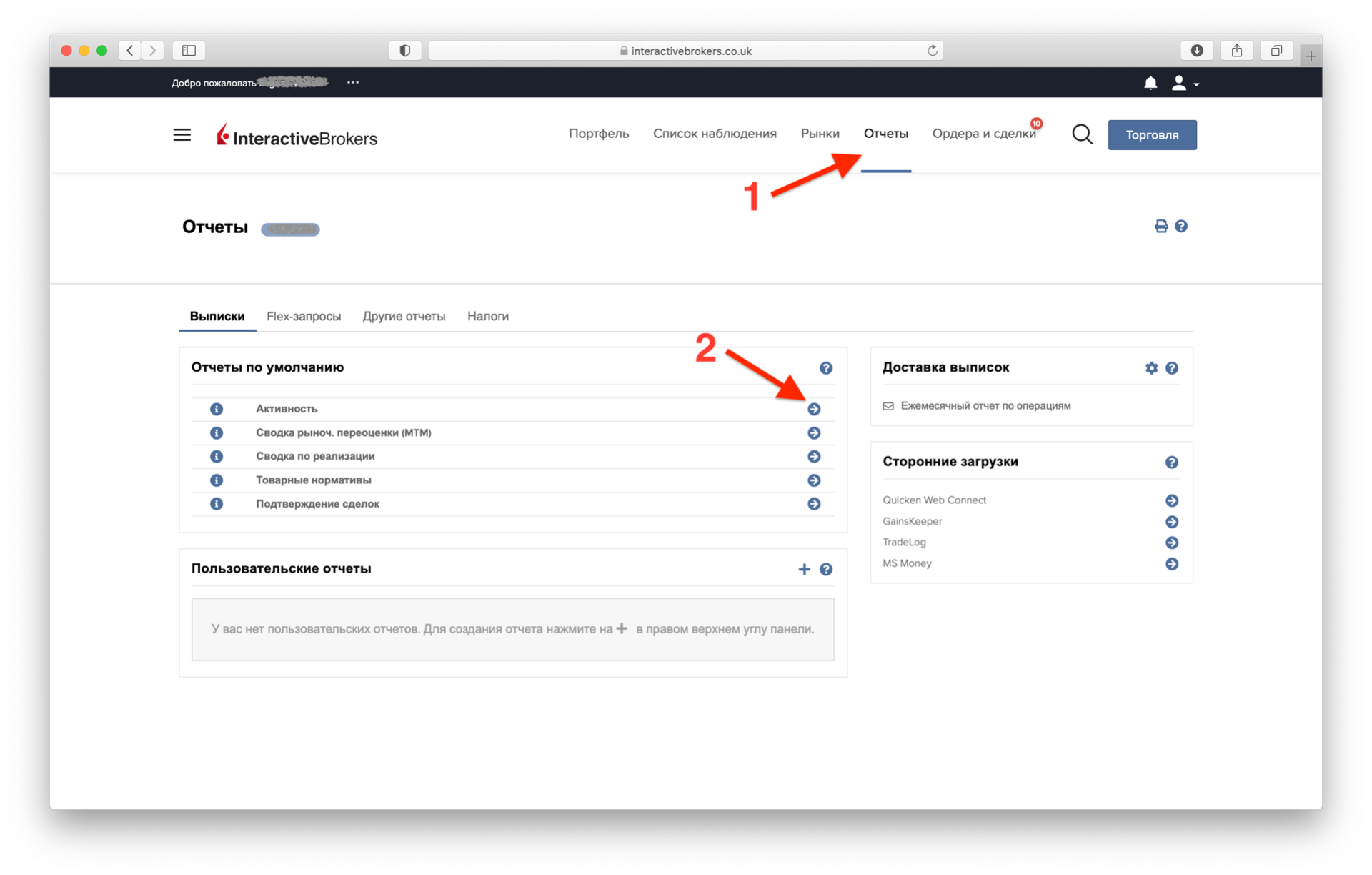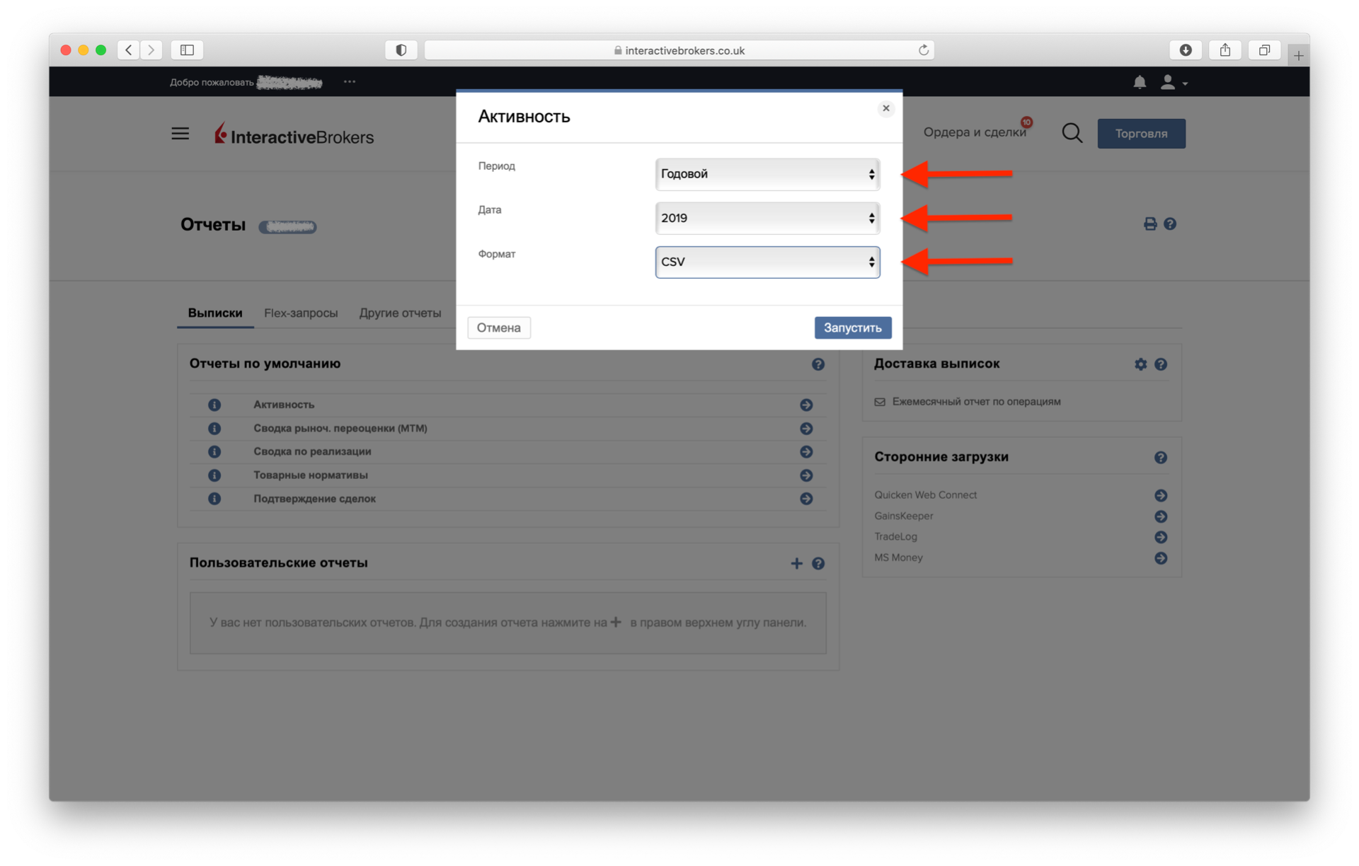 - Открой раздел Отчеты Портала IB и выбери тип отчета Активность (важно, чтоб отчет был на русском языке)
