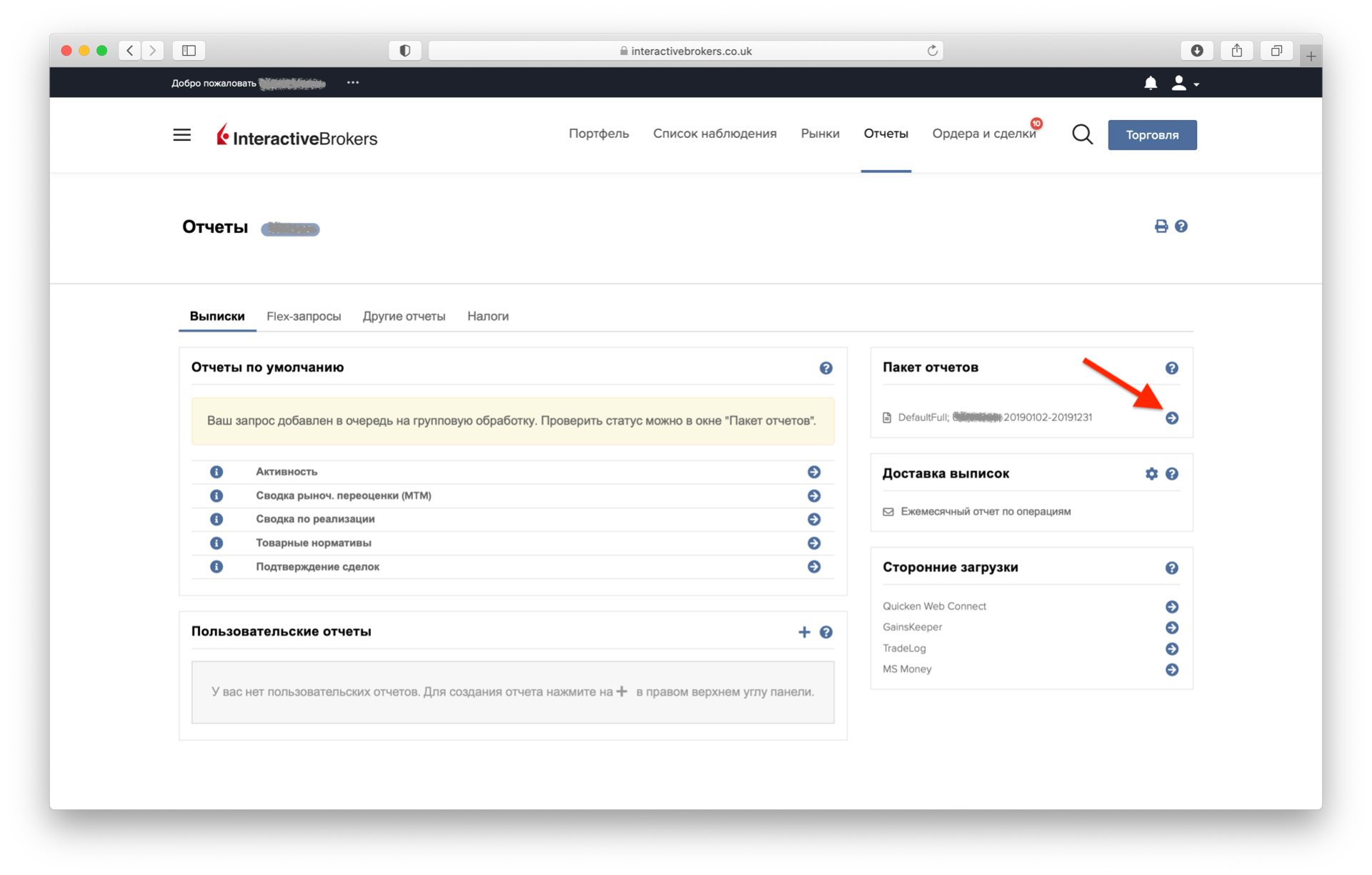 - Если скачивание отчета не началось сразу, то нужно подождать и скачать отчет в разделе Пакет отчетов